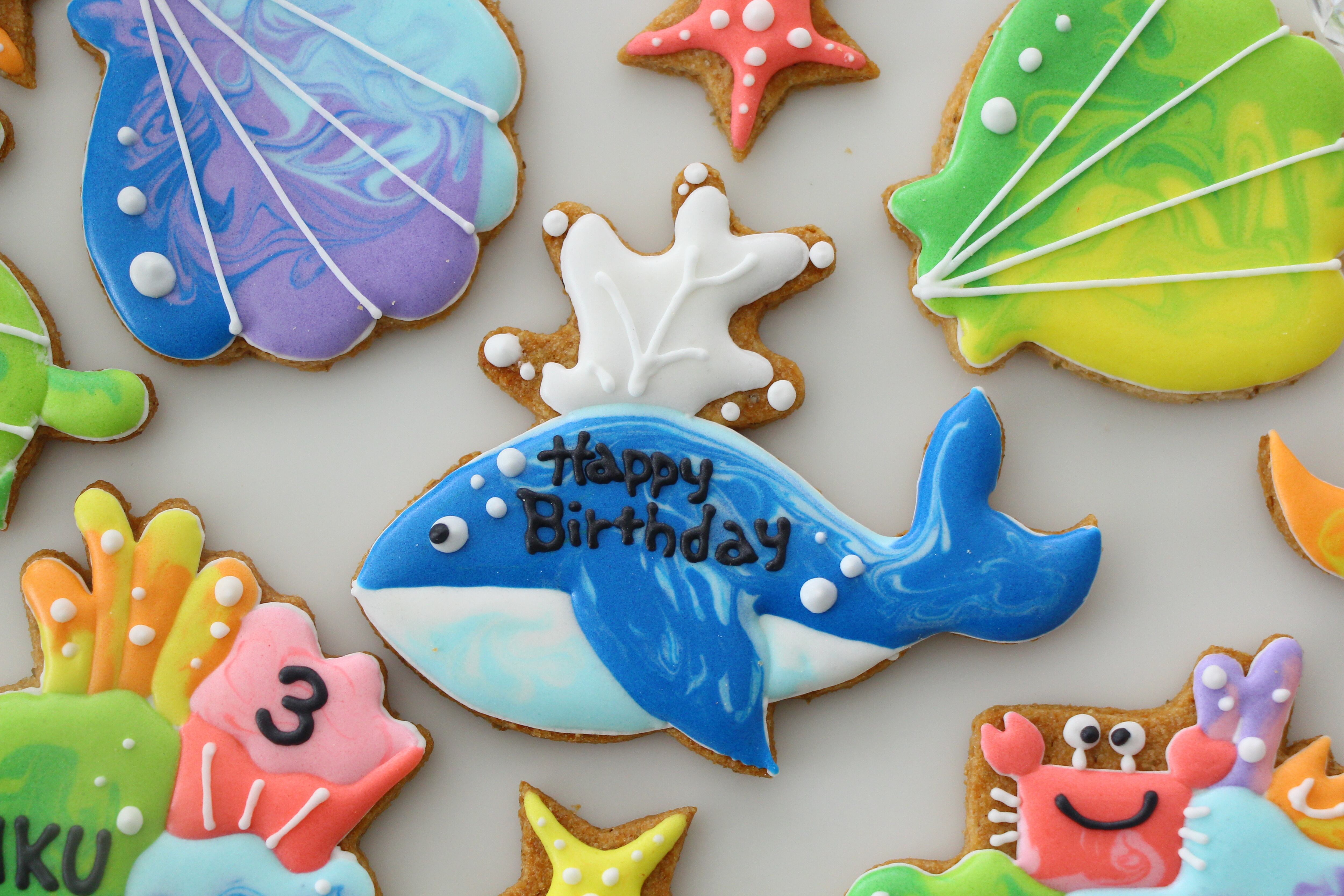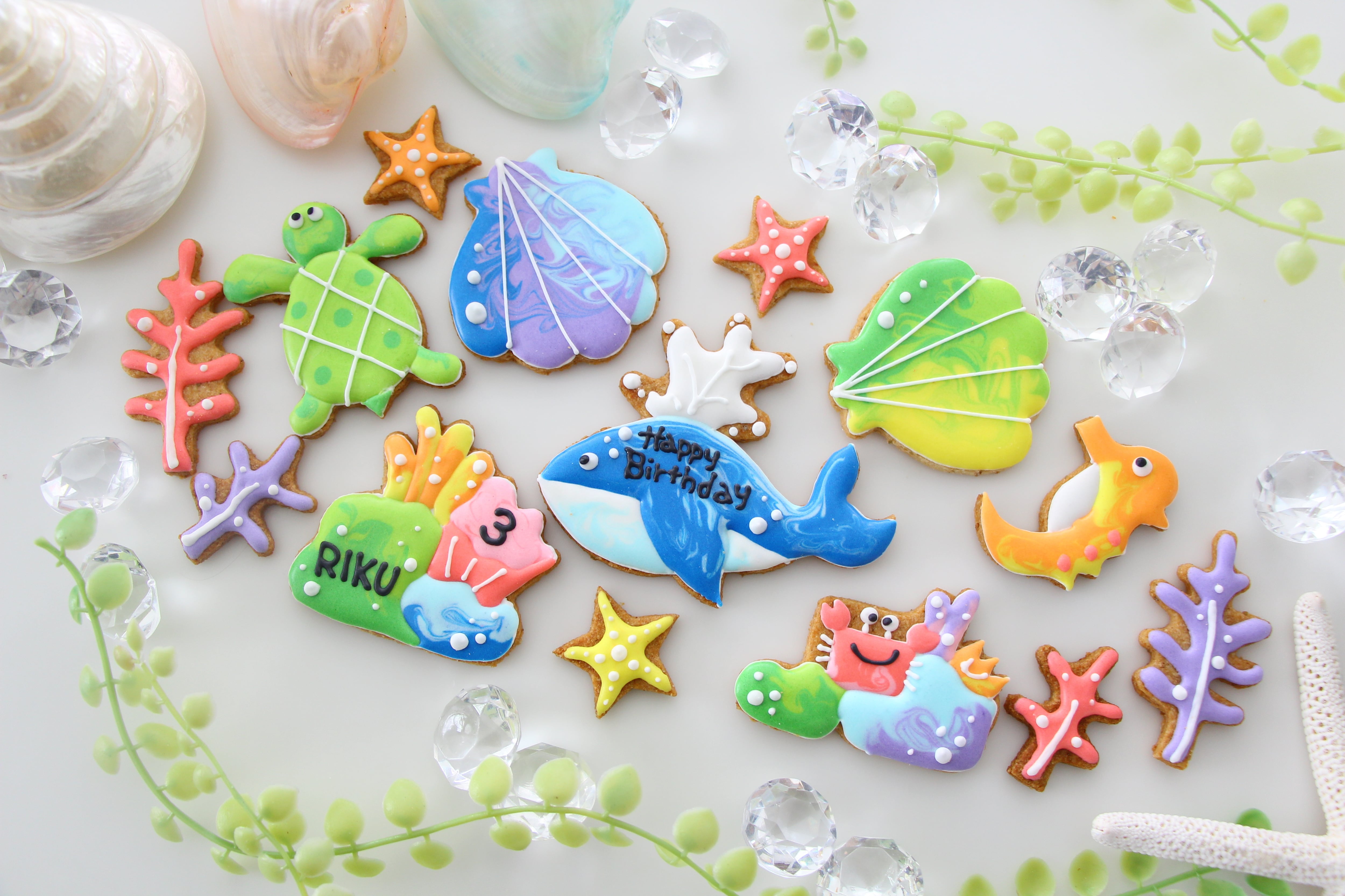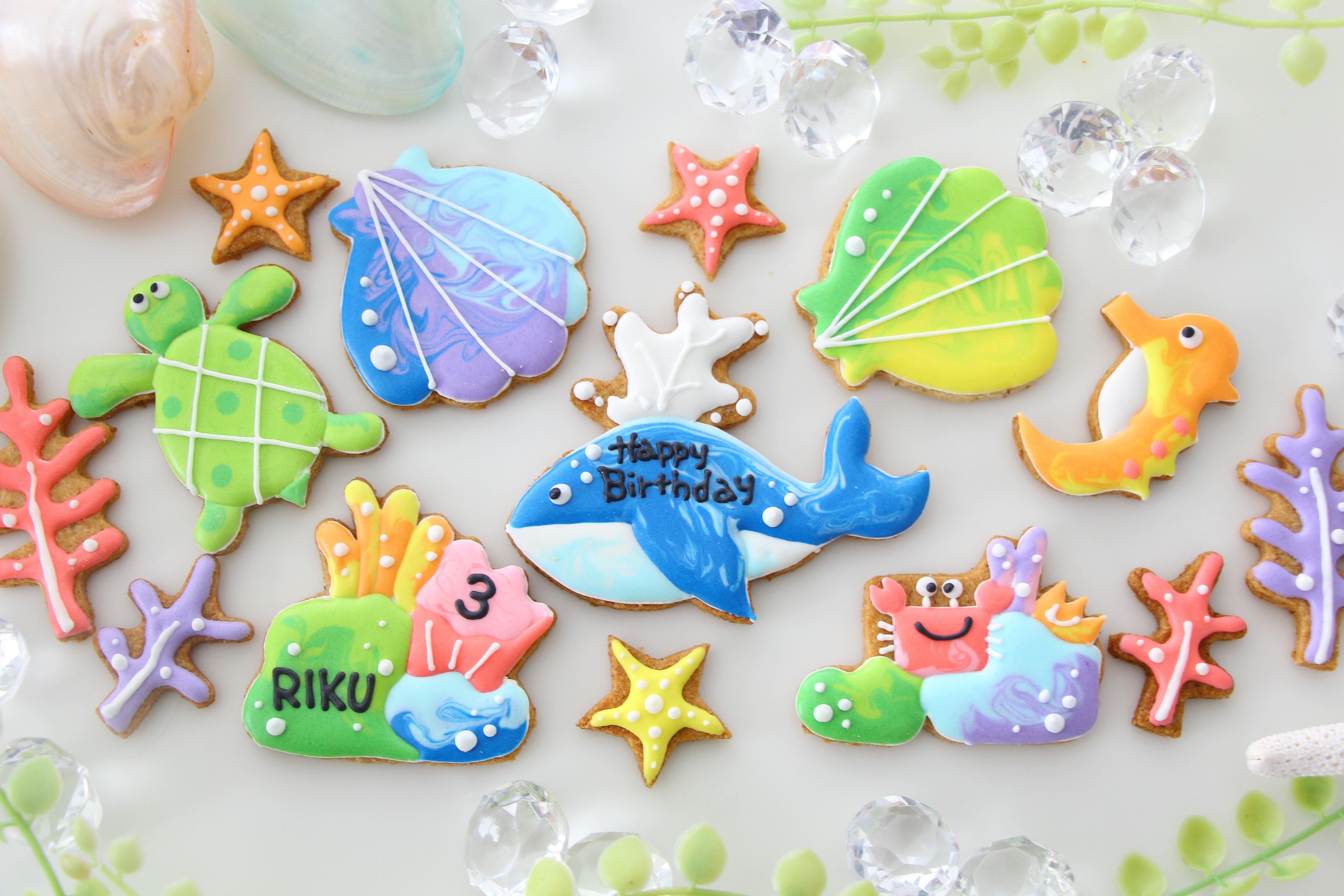 海 【アイシングクッキー】 クジラ カラフル ウミガメ 貝殻 夏 海の生き物 誕生日 オーダー