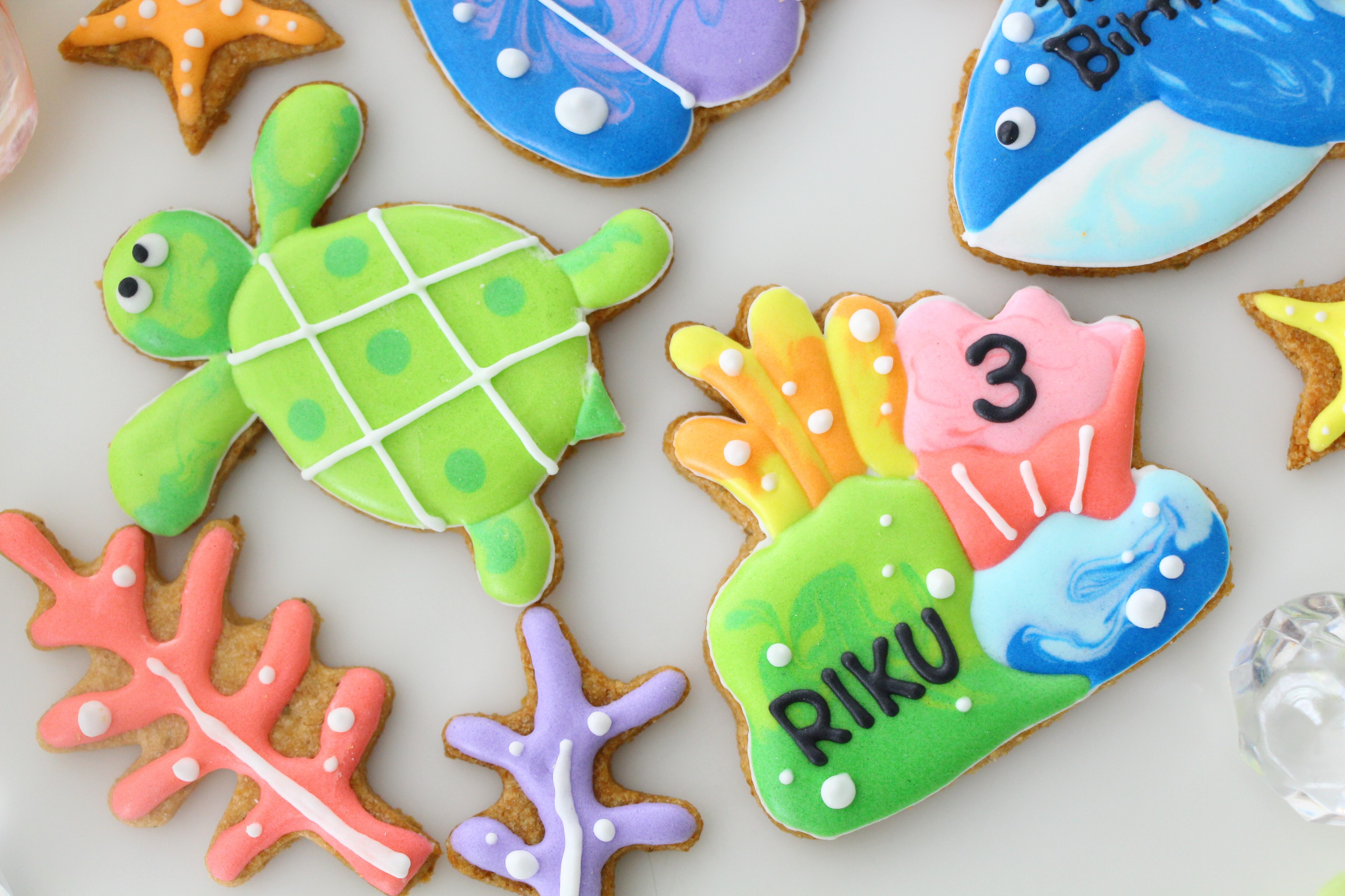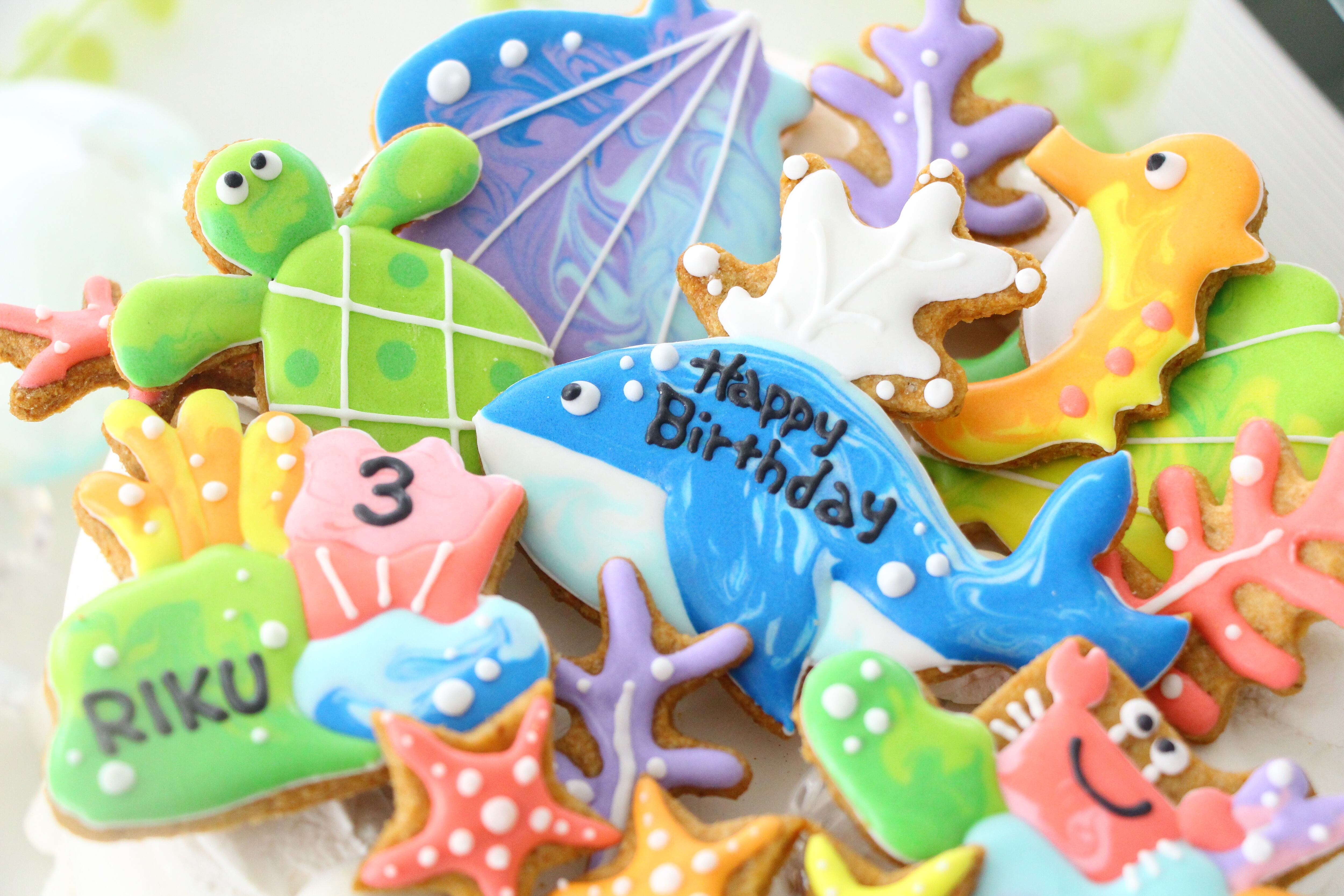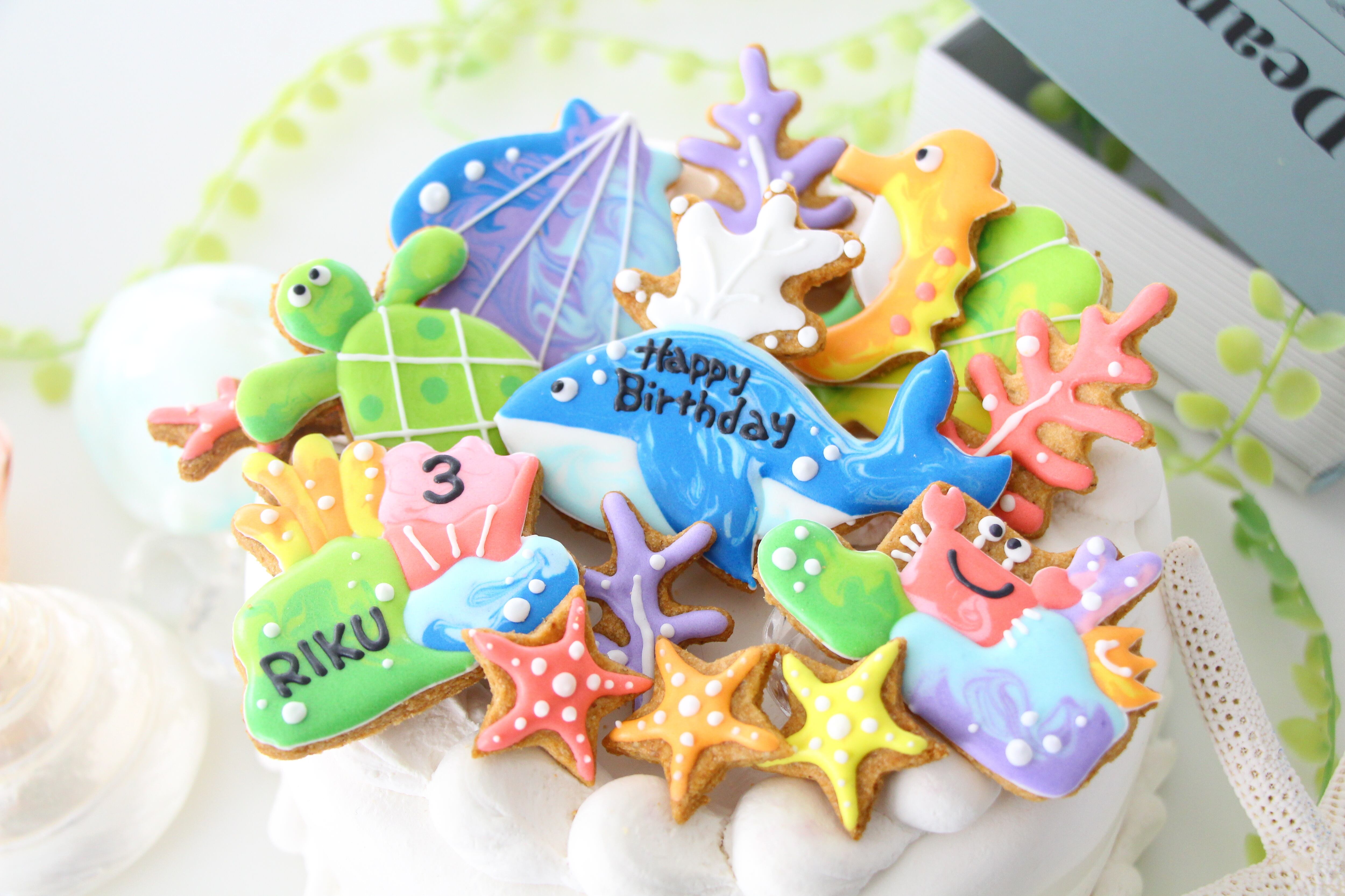 海 【アイシングクッキー】 クジラ カラフル ウミガメ 貝殻 夏 海の生き物 誕生日 オーダー