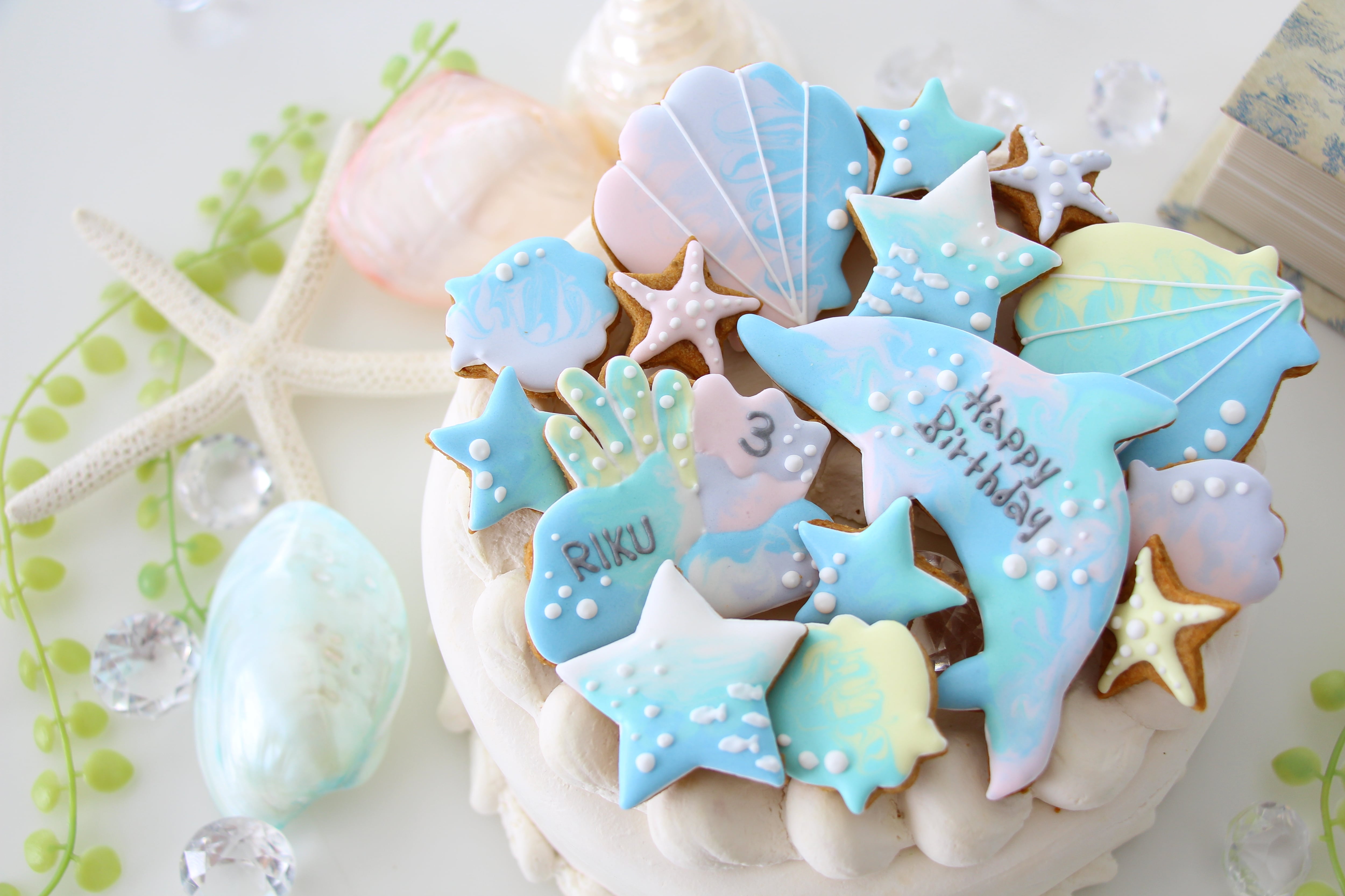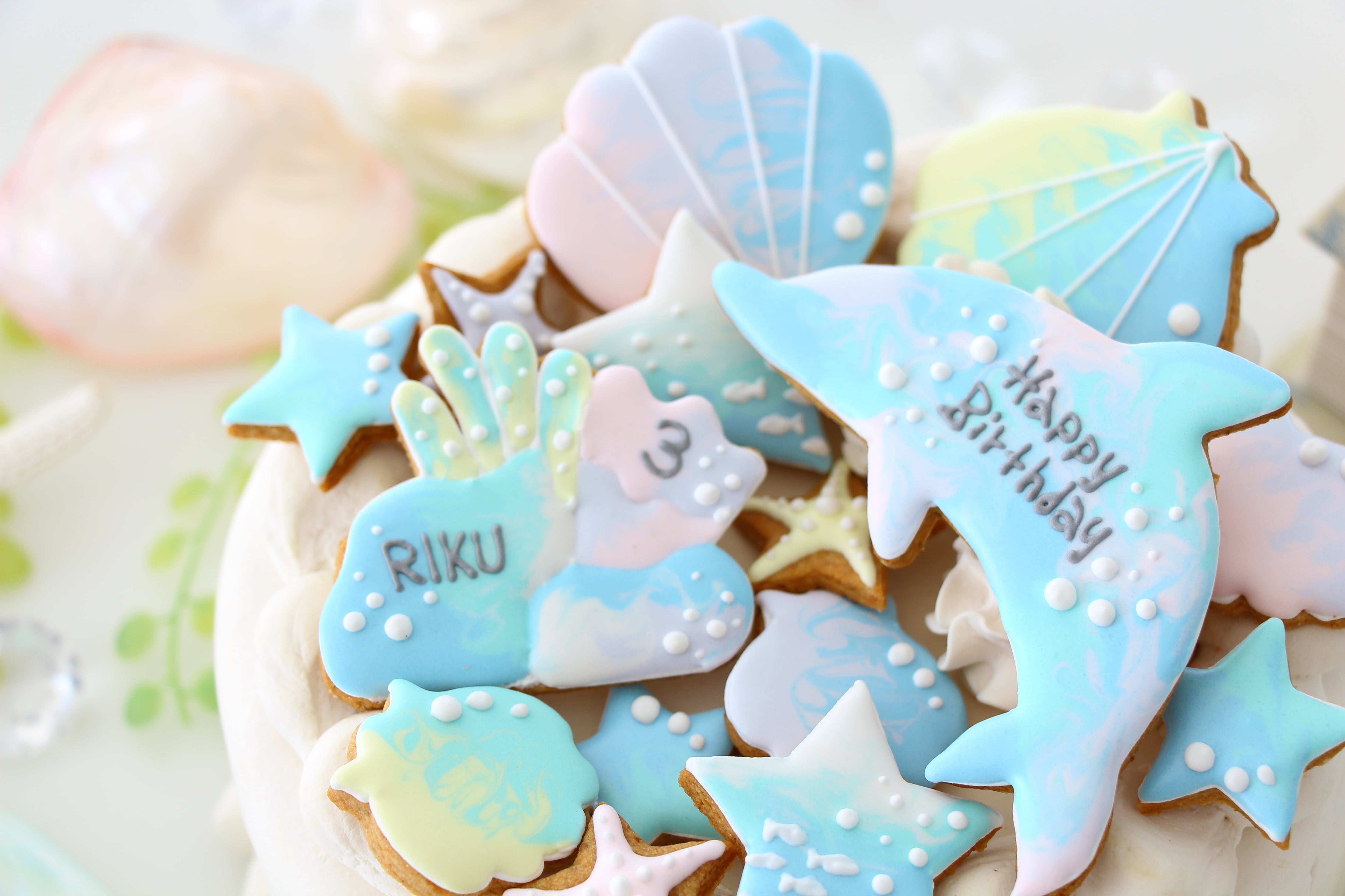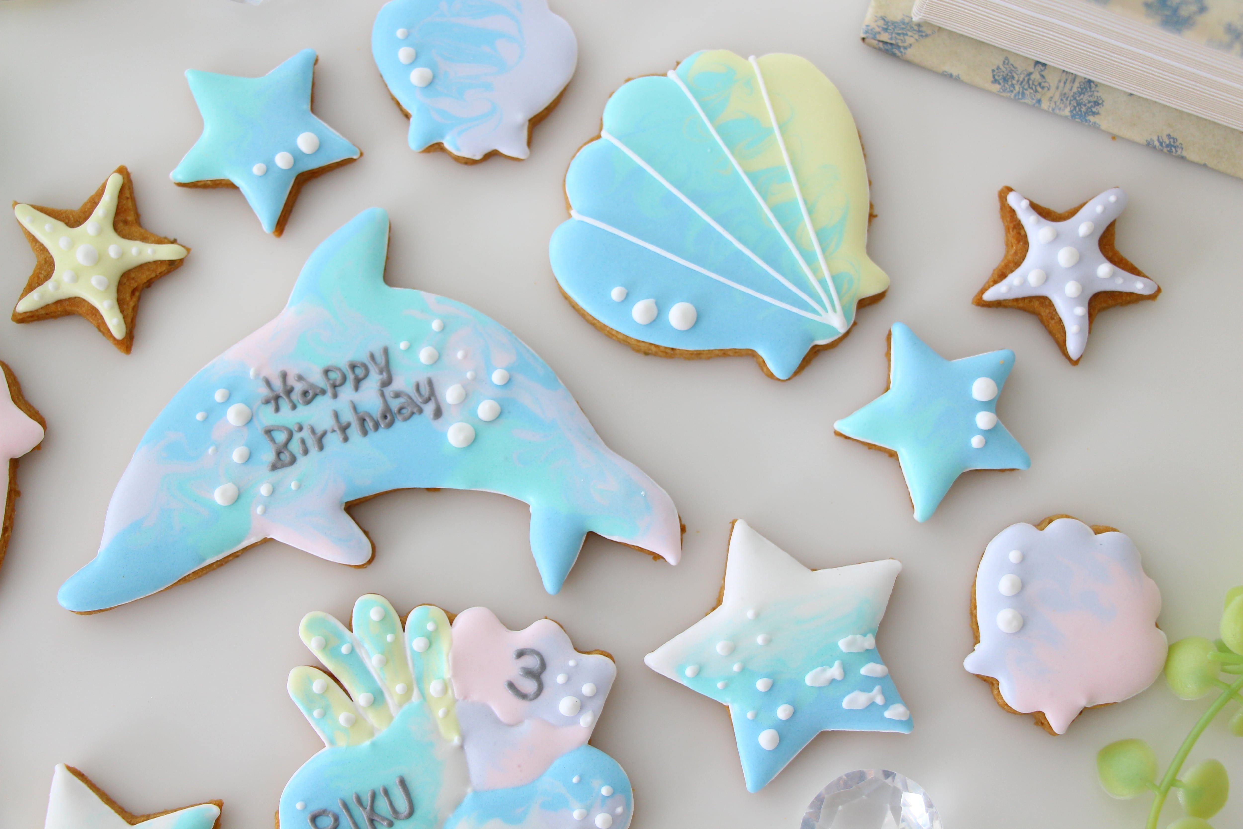 イルカ 【アイシングクッキー】 誕生日 オーダー 人気 夏 海 水色 青
