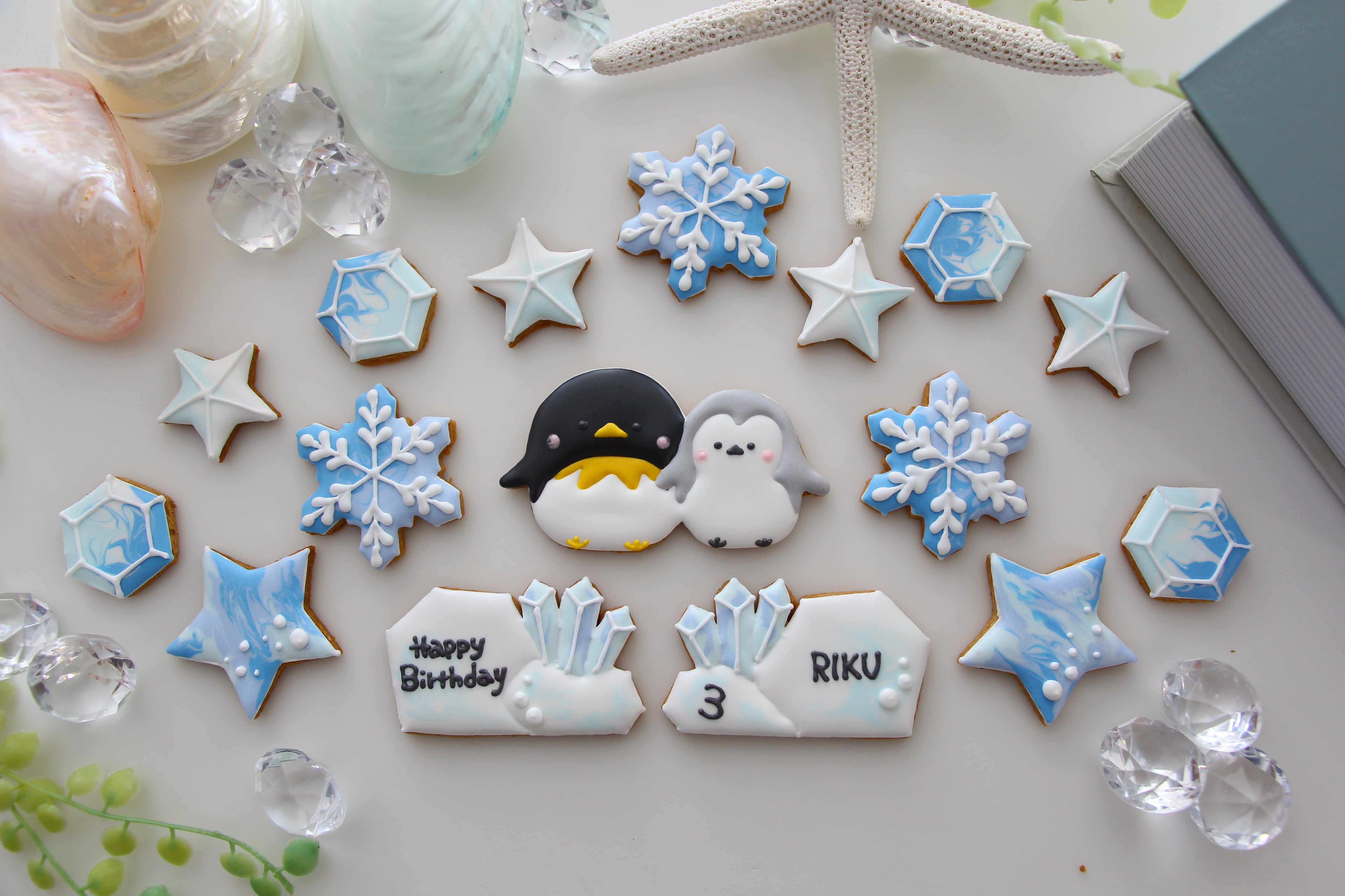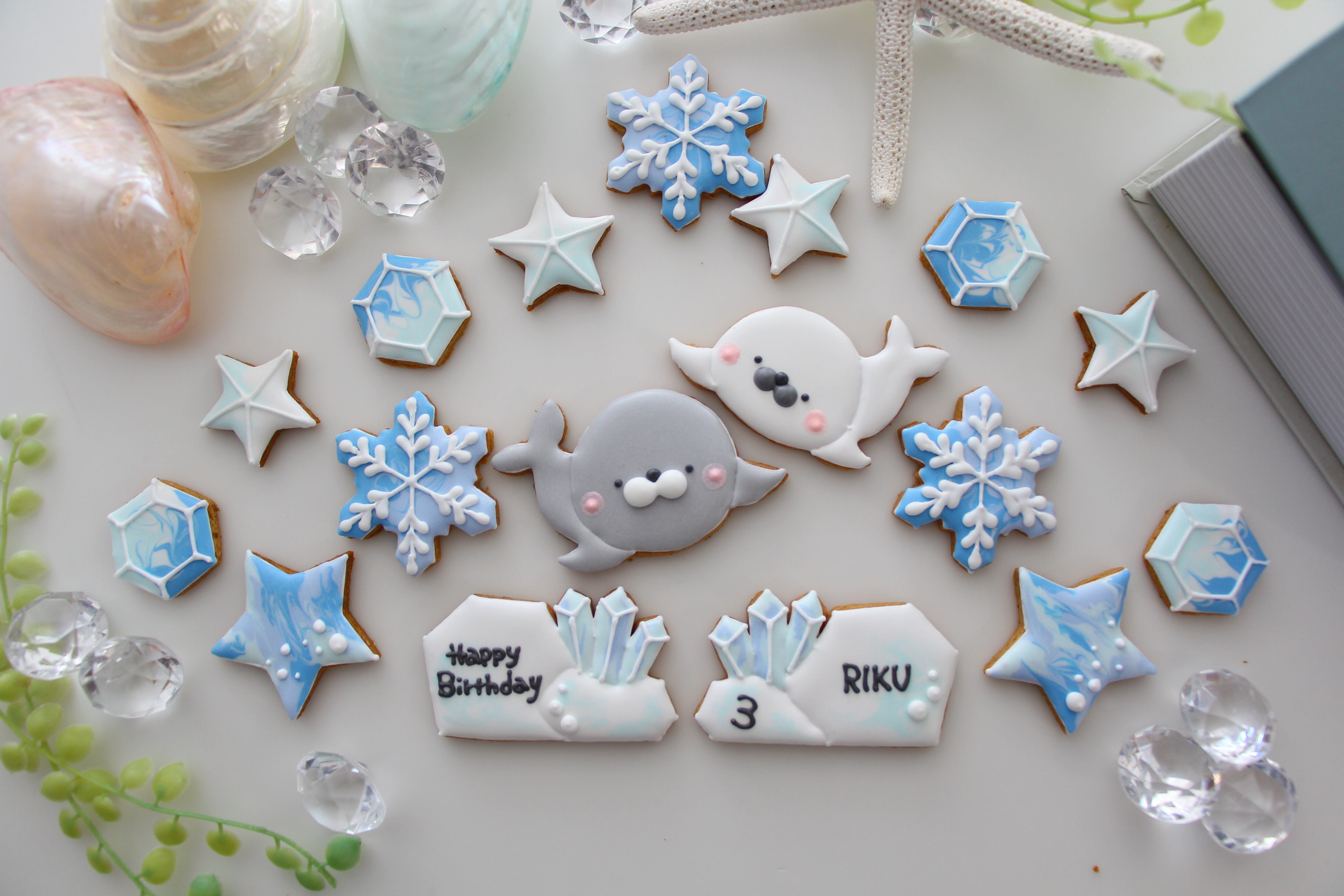 ペンギン 【アイシングクッキー】 誕生日 オーダー 雪 氷 星 海 夏