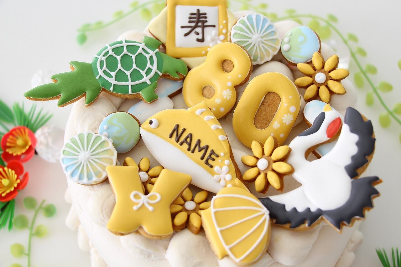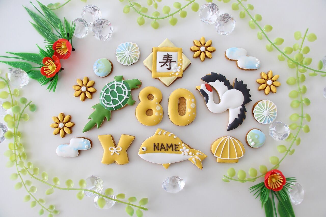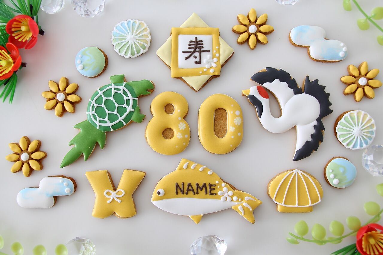 ~【祝80歳】傘寿のお祝い名入れアイシングクッキーセット~