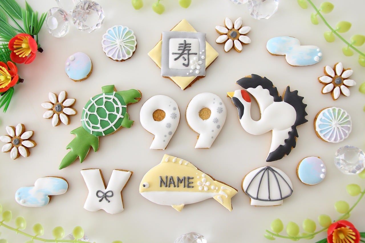 白寿祝い 【アイシングクッキー】 和柄 オーダー 白 99歳 誕生日 プレゼント ギフト 通販