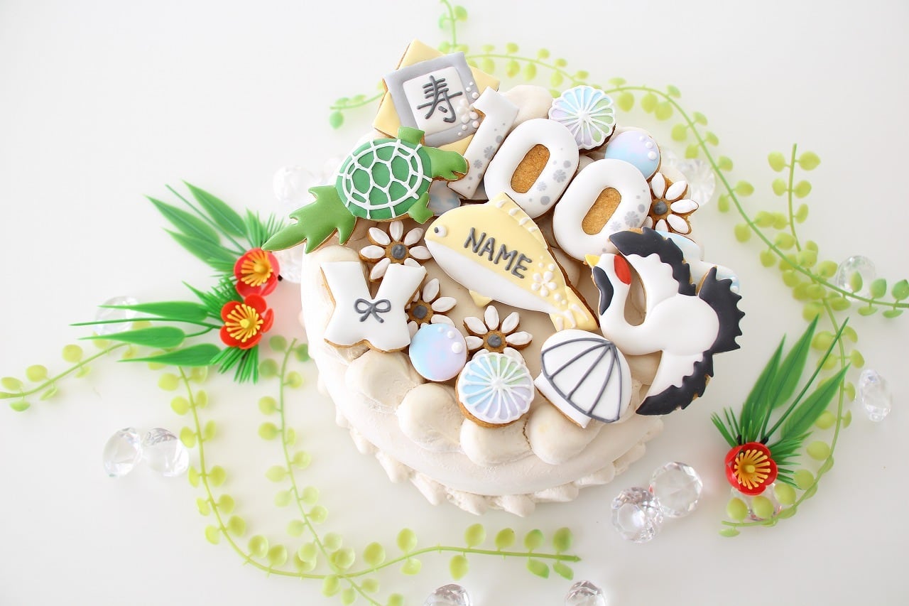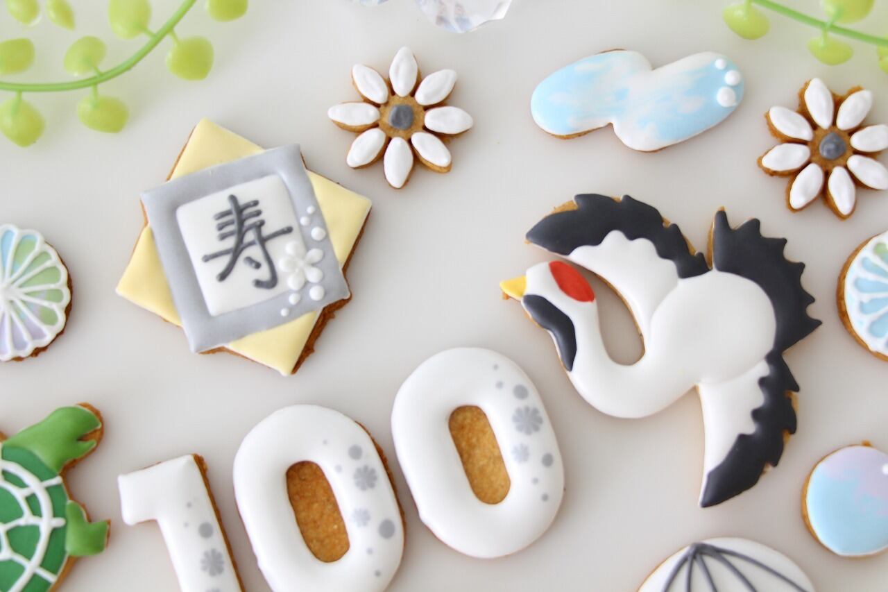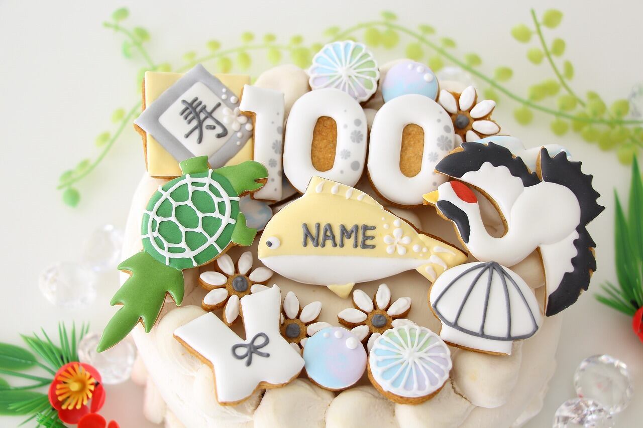 百寿祝い 【アイシングクッキー】 和柄 オーダー 白 100歳 誕生日 プレゼント ギフト 通販
