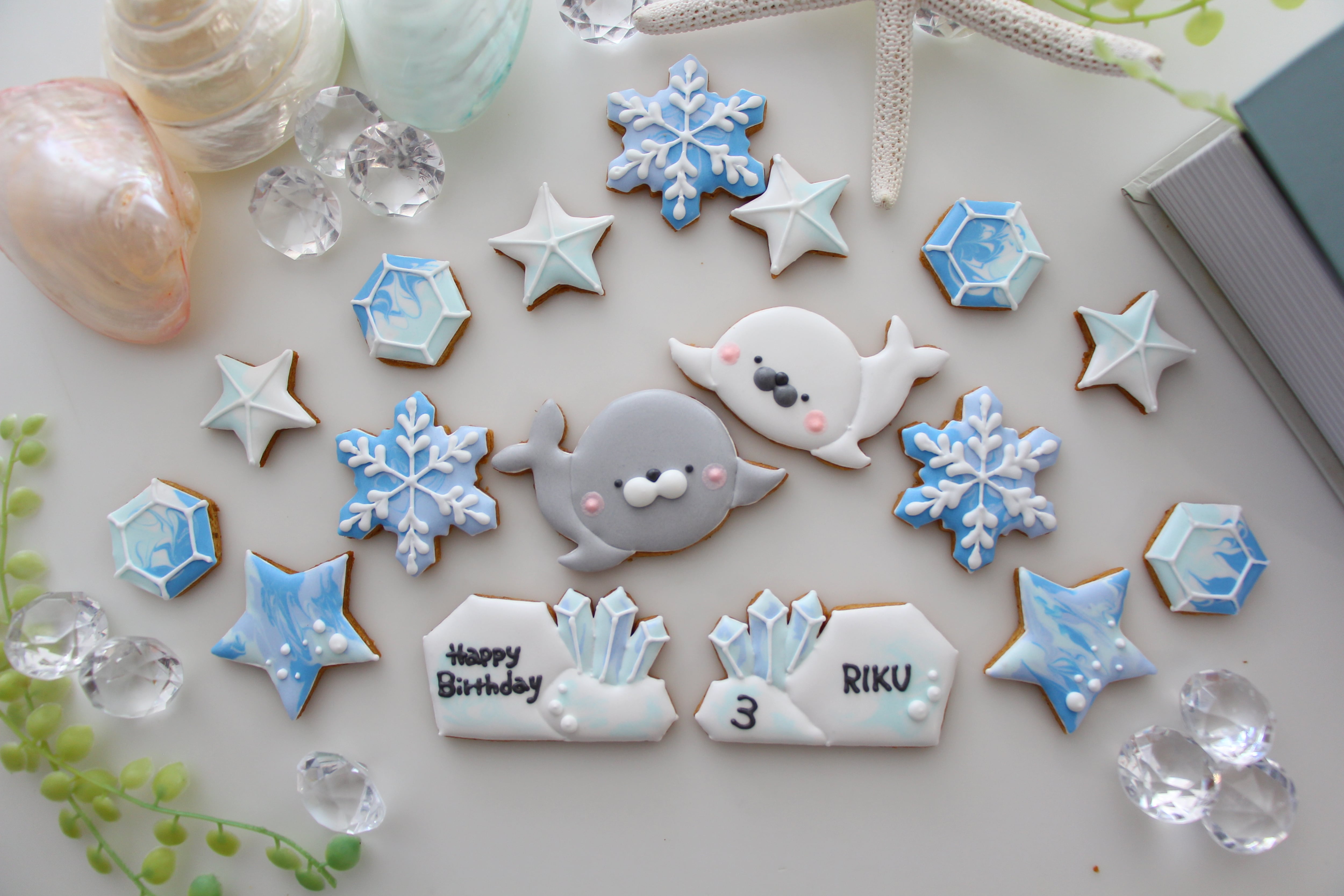 アザラシ 【アイシングクッキー】 親子 誕生日 オーダー 雪 氷 星 海 夏