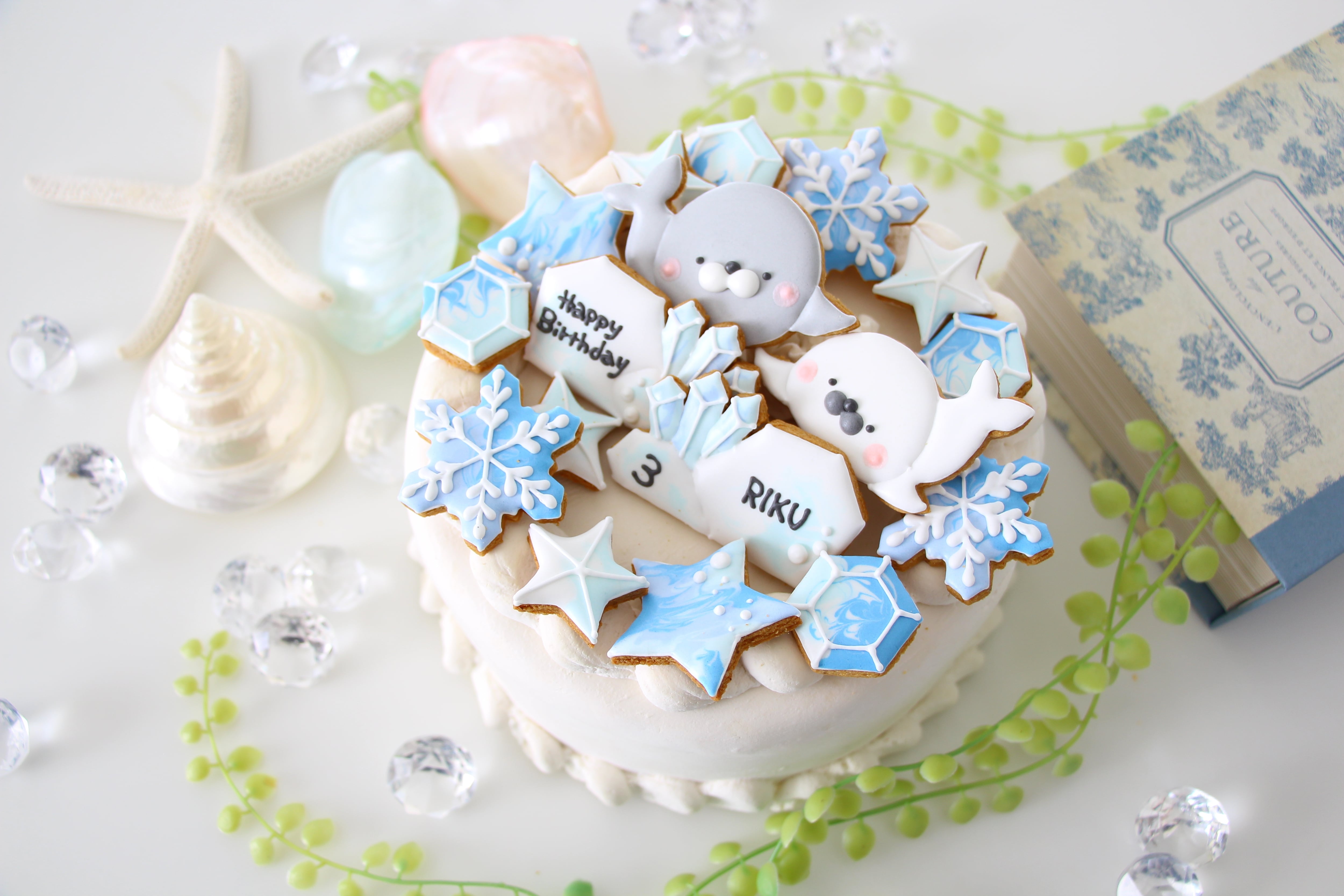 #アイシングクッキー #アザラシ #誕生日 #海 #氷 #涼しい #夏 #オーダー #誕生日ケーキ #飾り